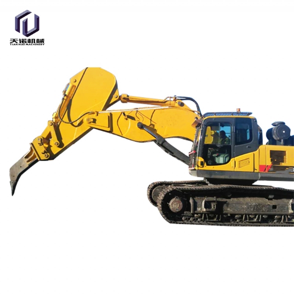 25-34吨位发掘机加长臂,可加长到20米,其设置装备摆设为:挖斗1个、铲斗油缸1支、销轴6支、 高压软管4条、黄油管3条、连杆总成1套、运输连杆1套、加长大臂(11米)、加长小臂(9米)。