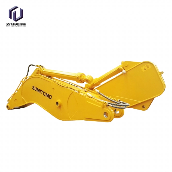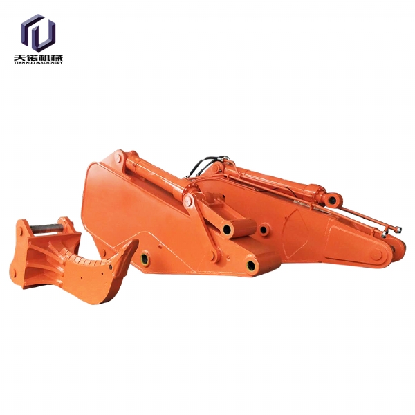 40-50吨位发掘机加长臂,可加长到26米,其设置装备摆设为:挖斗1个、铲斗油缸1支、销🌊轴6支、 高压软管4条、黄油管3条、连杆总成1套、运输连杆1套、加长大臂(14米)、加长小臂(12米)。